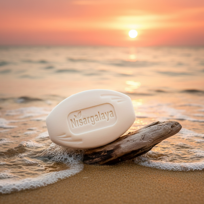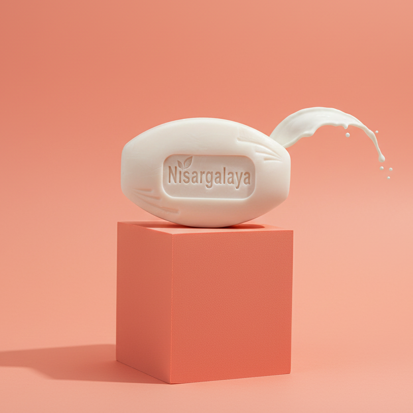 Experience the luxurious blend of Ayurveda and nature with Nisargalaya Milk Beauty Soap. Unlike harsh chemical soaps that strip your skin of its natural oils, this herbal formulation is enriched with pure Narikela (Coconut) Milk Oil and Milk Powder to provide deep nourishment while you cleanse.